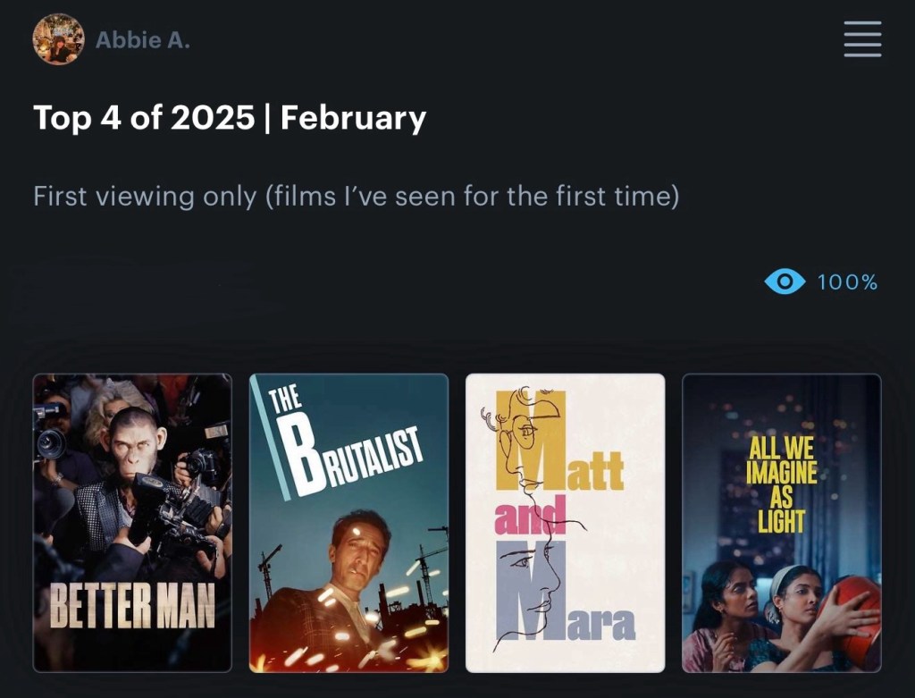 LET US FOLLOW EACH OTHER ON LETTERBOXD, PLEASE. Here’s mine : Abbie’s Letterboxd account
