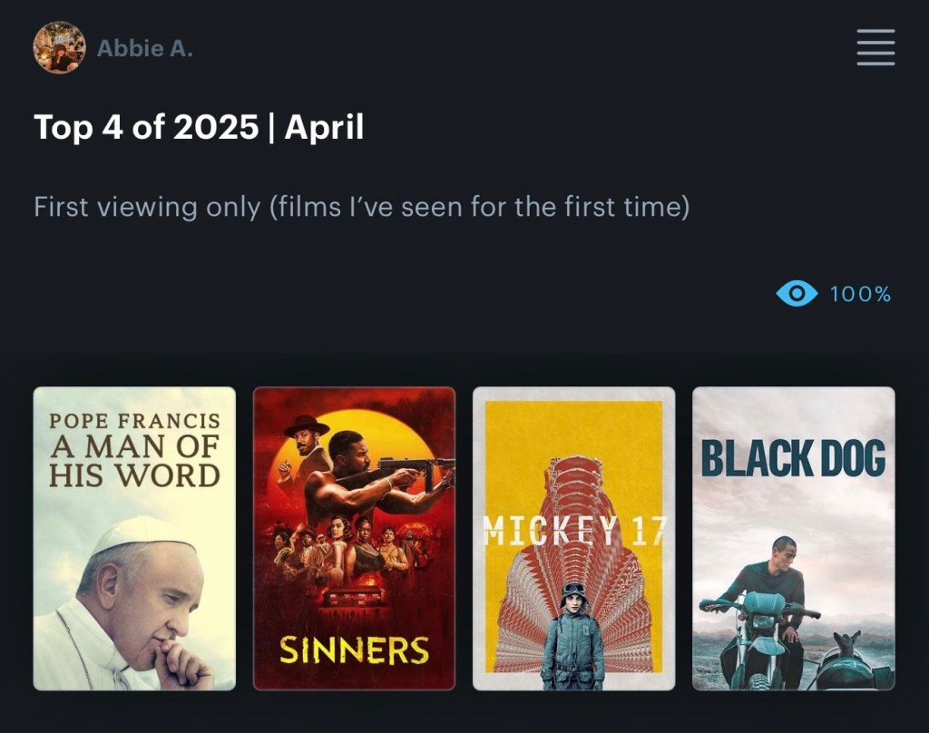 Speaking of which — if you fancy giving me a follow on Letterboxd : Abbie’s Letterboxd account.